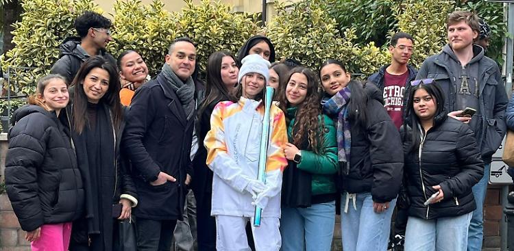 La torcia ha poi transitato per via Sanfelice, passando davanti all’istituto superiore con grande partecipazione degli studenti e dei professori, capitanati dalla dirigente Michela Dall’Asta e alla presenza anche dei volontari dell’associazione Arces. In vista dell’evento, le classi hanno lavorato nelle settimane scorse realizzando cartelloni, presentazioni multimediali e brevi video dedicati ai valori olimpici: pace, rispetto, inclusione, lealtà sportiva.