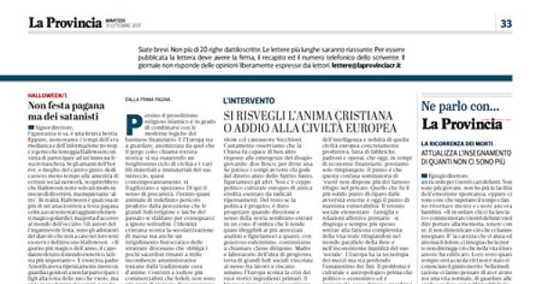 Si risvegli l'anima cristiana o addio alla civiltà europea