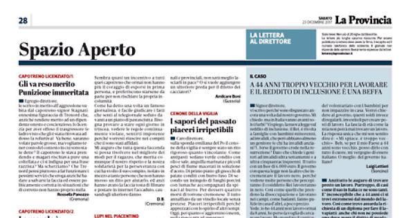vi scrivo perché sono disgustato ancora una volta dal nostro governo. Mi chiedo: ma in Italia vanno avanti solo i furbi? Vi spiego, la nuova legge sul reddito di inclusione, il Rei, è rivolta a famiglie con bambini minorenni, ad invalidi, che però abbiano almeno un genitore (e chi ha invalidi anziani?), forse il governo crede nella resurrezione? Dato che chiede i genitori ad invalidi ultra settantenni o a ultra cinquantacinquenni. Il tutto con un Isee di 6.000 euro. Il governo con questa legge non fa altro che incrementare il lavoro nero, perché vedrete molte persone che percepiranno il cosiddetto Rei lavoreranno in nero. Così come quelli che prendono la disoccupazione e lavorano nei campi, come badanti, fanno pulizie in casa d’altri, a poco prezzo.