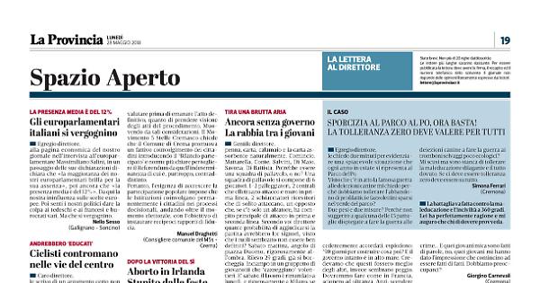 La battaglia va fatta contro la maleducazione e l’inciviltà a 360 gradi. Lei ha perfettamente ragione e mi auguro che chi di dovere provveda.