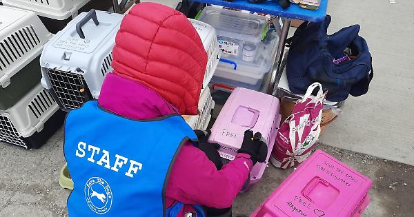 Trasportini donati per consentire ai profughi di viaggiare con i propri animali