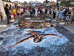Ultima tappa estiva Lauro, in provincia di Avellino, altro paese interamente dipinto dove Mora ha realizzato il suo primo murale nel 1976, quasi cinquant’anni fa. «A Lauro sono tornato spessissimo, vi sono esposte ben 20 mie opere. Per lungo tempo il festival naif era stato sospeso, per fortuna il sindaco Rossano Sergio Boglione ha creduto nel progetto di rinascita di questa manifestazione». A Lauro, Mora ha dipinto due nuovi murales, in uno dei quali la sua sfrenata fantasia ha dato vita a enormi e succulente angurie in cui nuotano uomini e donne. «Poi sono tornato a respirare l’aria del Po», conclude l’artista.