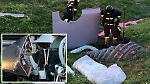 La conducente, una 63enne di Rivarolo, ha perso il controllo del mezzo, forse a causa dell'asfalto reso viscido dalla pioggia, finendo nel fosso e schiantandosi contro una spalla di cemento di una strada che entra in una proprietà privata.