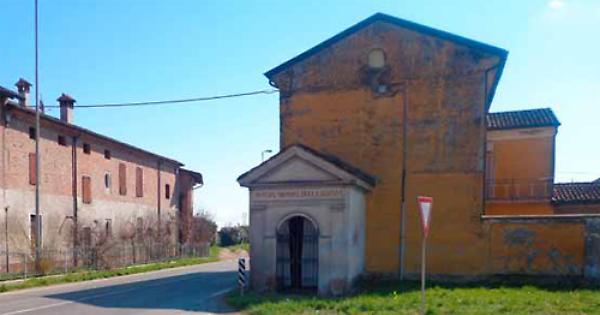 Santelle e cappellette sono un segno caratteristico delle nostre campagne, dove le tracce della devozione e della soggezione si trovano spesso lungo le strade, nelle cascine o in luoghi oggi abbandonati ma che un tempo accoglievano decine di famiglie. A Stagno Lombardo, forse proprio per la presenza di molte località sparse, si contano numerose chiese e santelle. La prima la incontra, ben prima del paese, chi giunge dalla strada ‘Bassa per Casalmaggiore’ passando necessariamente per l’incrocio meglio conosciuto come ‘Forcello’. Qui viene accolto da una cappelletta che riporta sull’architrave la scritta ben visibile ‘Nostra Signora della strada’. Si tratta di un piccolo edificio, appoggiato all’imponente caseggiato moderno che sorge alle sue spalle; un minuscolo selciato in mattoni rossi separa il tempietto dal prato su cui si affaccia. Di questo edificio troviamo traccia già verso la metà del 1800 su unamappa rilevata a mano, sulla quale viene indicata col termine ‘santella’, posta proprio nell’intersezione tra la strada, allora nominata ‘la Motta bassa’ e la diramazione per il paese, che all’epoca si chiamava ancora Stagno Pagliaro. È possibile che nei secoli precedenti, al posto della santella ci fosse una chiesa. Due cose ce lo fanno supporre: Forcello era una località di una certa importanza, tanto che fino al 1867 era Comune; inoltre in alcuni disegni del Campi, datati 1571, vengono segnalate 5 chiese nel territorio di Stagno Pagliaro e tra queste una è indicata proprio a Forcello.Ma la santella che troviamo oggi non risale a quell’epoca ed è pertanto probabile che sia stata eretta o su un edificio sacro pre-esistente o, per lo meno, nella stessa zona. Riguardo la dedica a ‘Maria Nostra Signora della Strada’, è facile capirne il perché, dal momento che da sempre il tempietto sorge su un importante bivio, quella biforcazione da cui deriva il nome ‘Forcello’; si deve poi ricordare che in origine gli affreschi nella santella raffiguravano l’immagine della Vergine nell’atto di offrire pane e conforto ad un pellegrino.