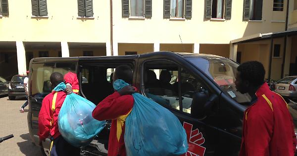 Migranti appena arrivati alla Casa dell'Accoglienza
