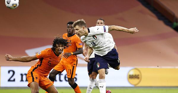 AMSTERDAM (7 settembre 2020) - Dopo il pari in casa con la Bosnia, gli azzurri si rilanciano nel girone di Nations League con un successo prestigioso (0-1) ad Amsterdam sull'Olanda. Mancini ne cambia sette rispetto a venerdì. Azzurri subito pimpanti: occasioni per Barella, Zaniolo e Immobile, per gli orange pericoloso Wijnaldum. Nel recupero il gol: azione corale, cross di Immobile, segna di testa Barella. Nella ripresa Insigne impegna Cillesen, ma Donnarumma salva su Van de Beek. Forcing olandese nel finale, Kean fallisce il raddoppio, tutto solo, al 91'. (ANSA)