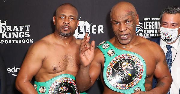 ROMA (29 novembre 2020) - E' finito in parità l'incontro-esibizione tra le leggende della boxe, Mike Tyson e Roy Jones Jr. Il ko che tanti sognavano non c'è stato, ma i due vecchi campioni hanno regalato spettacolo con lampi di dura boxe. Incontro non competitivo: 8 round di 2 minuti ciascuno, senza pubblico e senza casco protettivo, sul ring dello Staples Center, a Los Angeles. Tyson, 54 anni, e Jones, 51, non si sono risparmiati. E alla fine il ricordo di Maradona: "E' stato uno dei miei eroi e anche un mio amico. Ci mancherà molto", ha detto Tyson.