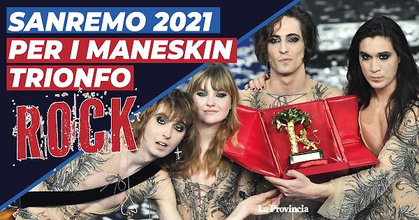 SANREMO (7 marzo 2021) - I Maneskin con il brano Zitti e buoni vincono il 71° Festival di Sanremo. Al secondo posto Fedez e Francesca Michielin con Chiamami per nome. Terzo Ermal Meta con Un milione di cose da dirti.