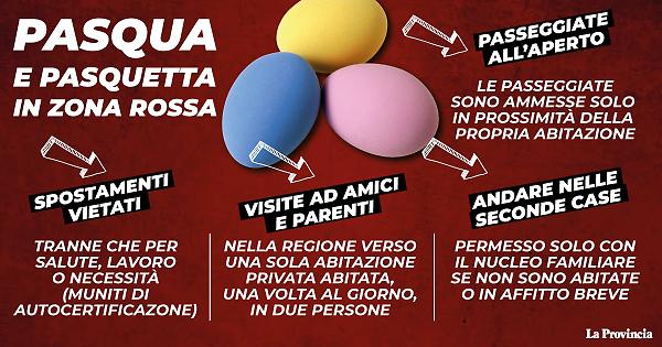 PASQUA IN ROSSO - Dal 3 al 5 aprile (come prevede già l'attuale decreto) tutta Italia sarà in zona rossa, come a Natale. Non si potrà circolare neanche all'interno del proprio comune ma è consentito, una sola volta al giorno, spostarsi in ambito regionale in massimo due persone più i minori di 14 anni conviventi per andare a trovare parenti o amici. E' inoltre sempre possibile svolgere attività motoria, ma solo in prossimità della propria abitazione, e attività sportiva all'aperto in forma individuale. (ANSA)