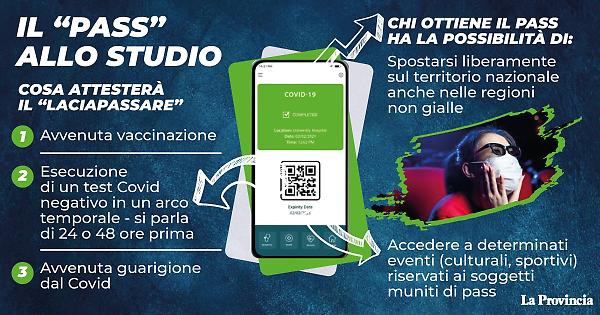In cosa consisterà il certificato, di cui il premier Mario Draghi ha parlato in conferenza stampa, non è ancora definito e i tempi «non saranno brevi». Fonti qualificate di governo spiegano che si guarda al modello del pass europeo. L’ipotesi è che contenga l’indicazione del vaccino effettuato o la certificazione di aver avuto il Covid ed essere guarito. Il pass, però, potrebbe anche essere legato anche all’effettuazione di un tampone nelle 48 ore precedenti allo spostamento.