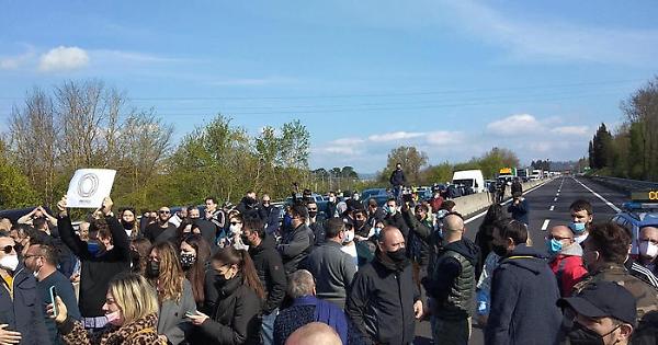 FIRENZE (19 aprile 2021) - Mentre sulla A1 continua la protesta dei ristoratori che contestano per la prossima riapertura soltanto per chi ha spazi all'aperto, uno dei ristoratori è stato investito da un'auto che ha forzato il blocco organizzato da Tni (Tutela nazionale imprese Italia) tra Firenze e il Valdarno. Per fortuna le condizioni dell'imprenditore non sono gravi. Sull'autostrada è stato allestito un tavolo: "Si apparecchia, sì, all'aperto, ma in autostrada, vicino agli autogrill". Si vuole tornare a lavorare, "rispettando i protocolli di autogrill e mense". (ANSA)