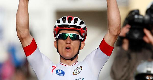 Il 24enne polacco Michal Kwiatkowski, con un attacco a sorpresa sulla salita finale di Miranda, conquista l'iride nella prova in linea. Il belga Gerrans, distanziato di 3", brucia il gruppo in volata e centra l'argento. Valverde è 3° Corsa subito movimentata e nel finale finale resa ancora più dura dalla pioggia. Azzurri sempre presenti nelle fasi più importanti. L'azione decisiva si sviluppa a 25 km dal traguardo, quando scattano De Marchi, Kiriylenka, Andersen e Gautier, ai quali si aggiunge Kwiatkowski che poi resta solo e vince.