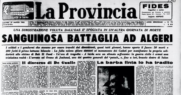 I soldati e i gendarmi che stavano per essere travolti dai dimostranti, quasi tutti giovani, hanno aperto il fuoco: 50 morti e 200 feriti il primo luttuosa bilancio - La folla voleva sfilare davanti al monumento dei Caduti per manifestare la propria solidarietà alle vittime di Bob El Oued