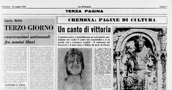 (...) piange avvilito il popol cremonese. Perché ha perduto il carrocci o é divenuto inquieto. del che giubila il coro degli angeli, lieto . Cremona , confusa dall a manifesta volontà ' divina , s' è messa la veste di lutto, perchè, perduto il carroccio, testimone d'onore , si trova nel mezzo dei guai (...)