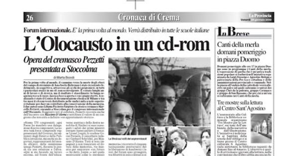 I due autori sono Liliana Picciotto Fargione lo storico cremasco Marcello Pezzetti, entrambi a Stoccolma per il congresso internazionale sull’ Olocausto. Raggiunto ieri al cellulare, Pezzetti racconta anche dell’incontro con Massimo D’Alema e sottolinea il valore di un congresso che non esita a definire «un appuntamento storico».