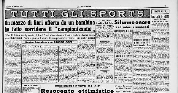 La notizia rimbalzò di bocca in bocca e sui fili del telefono, arrivò in redazione. Strada facendo ringraziamo mentalmente l'intelligentissimo informatore (deve possedere inconsciamente una perfetta mentalità giornalistica) e arriviamo così al ristorante Gallina. Un giovane cameriere ci introdusse nella sala dove Coppi stava facendo colazione tra gli sguardi ammirati e avidi di una turba di ragazzini, reduce dal Vigorelli dove, in coppia con Bevilacqua, aveva colto domenica un magnifico successo nell'omnium internazionale e nell'americana, e diretto a Mantova per partecipare all'Omnium delle Nazioni.