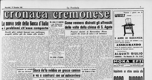 L'antica Basilica di S. Agata, ricostruita ed ingrandita nel 1496, fu decorata da Bernardino Ricca, detto Ricco, nel 1510 con ornamentazioni floreali molto interessanti. Ecco come le descrive il critico e studioso d'arte, marchese Giuseppe Picenardi nella sua «Nuova guida di Cremona», edita da G. Feraboli in Cremona nel 1820, pag. 157 e seg.: «Tutta la volta della nave maggiore e del braccio traverso fu dipinta, non già da Camillo Boccaccino, come afferma il Vasari ,ma da Bernardino Ricca, detto Ricco, come vi sta scritto, l'anno 1510, il quale due anni dopo di questo lavoro fu chiamato a dipingere nel Duomo col Pampurino, e l'adornò di bei fregi e dorature... Quivi ha introdotto un ciclo di fini azzurri, d'innanzi a cui passano intrecciate fronde d'albero che veggonsi spuntare dal cornicione, che ricorre per tutta la croce, ove scorgonsi girar pure balaustrate con diverse figure. A quando, a quando fra lo frondi, veggonsi comparire medaglioni colla effigie di alcuni Santi, stemmi gentilizi d'antichi prelati che governarono la Chiesa, con altro vaghe e capricciose invenzioni... Ma se queste volte di S. Agata non copronsi di bianco, sarà un vero prodigio! L'essersi queste pitture in fino ad ora conservate, noi lo dobbiamo allo zelo veramente patrio di alcuni Fabbriceri, che hanno dimostrato fermezza nel proposito; del resto odesi sovente susurrare: quanto starebbero bene imbiancate queste volte... che è quanto dire, rese conformi a quelle di tutte le Chiese più dozzinali e disadorne. E' ben stato sfortunato nè suoi lavori il Ricco!: Quelli del Duomo (gli ornati sopra la grande fascia affrescata e nella divisione degli istoriati) perchè fatti a secco, ebbero bisogno di essere rinfrescati e vennero rimpiastrati dal dissoluto pennello dello Zaist; questi che sono i soli, che a fresco rimangono di tale preclaro artista fra di noi, arrischiano d'essere ora coperti dalle vandaliche scope degli imbiancatori. Se ciò accade sarà un segno che il gusto per le arti va sempre più declinando».