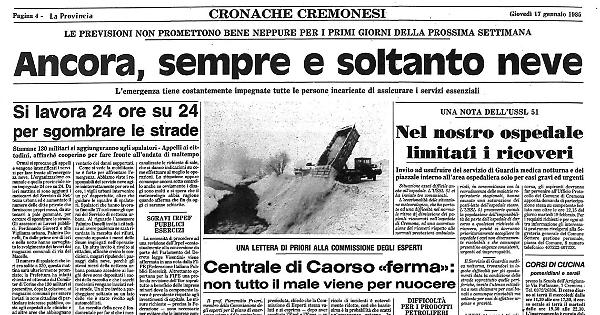 Prima i disagi affrontati con filosofia, ma ora comincia la paura. La neve ha raggiunto ormai i 60 centimetri di spessore ed i tetti di alcune vecchie case, capannoni e stalle stentano a reggerne il peso. Già ieri si sono avuti numerosi crolli sia in città che in provincia; fortunatamente nessuno è rimasto ferito. Ma le previsioni del tempo non inducono all'ottimismo.