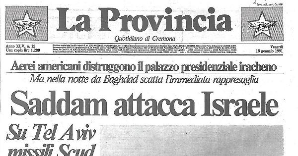 Saddam ha attaccato Israele dopo l'una: 5 missili 'Scud' hanno colpito Tel Aviv. Questi missili non portavano, secondo il Pentagono, armi chimiche, ma testate convenzionali e avrebbero colpito un ospedale e una zona periferica popolosa. L'azione irachena ha seguito un raid americano su Baghdad che aveva colpito e distrutto il palazzo presidenziale. La controffensiva era temuta e si è verificata: Saddam aveva promesso che, in caso di attacco americano, il primo ad essere colpito sarebbe stato lo Stato ebraico. E così è stato. Ora si teme che la rappresaglia israeliana, che molti danno per scontata, possa provocare un allargamento del conflitto. La notizia dell'attacco iracheno è giunta alla fine di una giornata che si era chiusa con un bilancio positivo per gli Usa: mille aerei, diciottomila tonnellate di bombe: due dati che danno l'idea della terrificante potenza distruttiva dei due raid degli Usa.