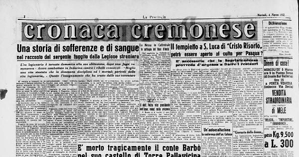 Sino al principio di questo secolo, la casata dei Barbò era fra le più insigni della nostra città e dell'ultimo conte Barbò, e dei suoi splendidi cavalli e delle sue vetture di foggia strana, il ricordo è vivo ancora fra i vecchi cremonesi.