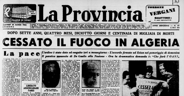 Ciò che è stato deciso e concordato a Evian. ha detto con voce accorata il Presidente De Gaulle alla televisione, corrisponde a tre verità. Eccole: anzitutto l’interesse della Francia e le realtà francesi, algerine e mondiali esigono che l'Algeria sia libera di decidere della propria sorte. In secondo luogo, i due popoli sono destinati a collaborare, e la guerra di sette anni, coi suoi dolori, deve averli convinti della necessità di marciare insieme: le differenze di razza, di vita e di religione non costituiscono un ostacolo insuperabile. Infine l'Algeria ha bisogno della Francia per il suo progresso economico, tecnico e culturale, e perchè gli algerini che vivono nella metropoli possano contribuire col lavoro al benessere del loro Paese.