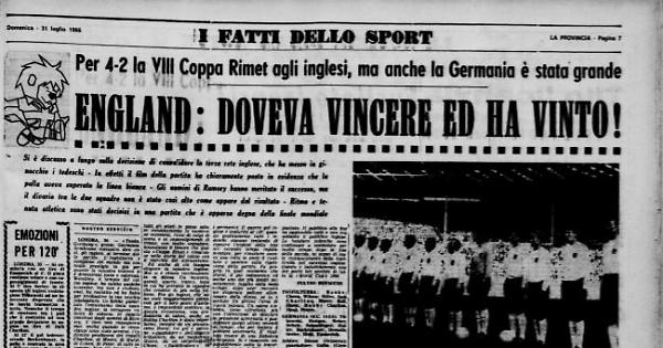 Di questa partita si parlerà ancora a lungo. Si discuterà sulla terza rete inglese, quella di Hurst al 10' del primo tempo supplementare, quella che ha messo in ginocchio l'ormai esausta squadra tedesca, si discuterà sul quarto gol, ancora di Hurst allo scadere del secondo tempo supplementare, mentre il campo era stato invaso dal pubblico che anzitempo voleva festeggiare i vincitori, dimenticando che già sul finire dei primi 90' la Germania aveva fatto svanire sull'1-2 il vantaggio dei britannici. Era effettivamente gol, il terzo degli inglesi? Pochi possono rispondere con sicurezza ad una domanda del genere, non certo gli spettatori ed i giornalisti troppo distanti dalla linea della porta per esprimere un giudizio apprezzabile, non l'arbitro che al momento del tiro era a circa venti metri dal fondo-campo non i giocatori perché troppo interessati a dare due versioni diverse. L'unico che in tanta incertezza sembra aver avuto le idee chiare è stato il guardalinee sovietico Ttofikc Bakhramov al quale il direttore di gara, che in coscienza non si sentiva di prendere una decisione da solo, si era rivolto. Dalla brevità del colloquio dei due si può arguire che il segnalinee non ha avuto alcuna incertezza per lui era gol e gol ha decretato lo svizzero Dienst. È il regolamento.
