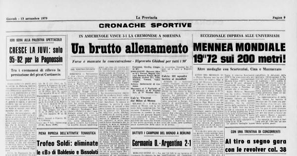 CITTÀ DEL MESSICO, 12. – Pietro Mennea non ha ancora finito di stupire. Nella finale dei 200 metri delle Universiadi di Città del Messico, l’italiano ha stabilito il nuovo primato mondiale sulla distanza, con il tempo di 19’’72. Il precedente primato era stato stabilito dallo statunitense Tommie Smith con 19’’83 nelle Olimpiadi di Città del Messico.