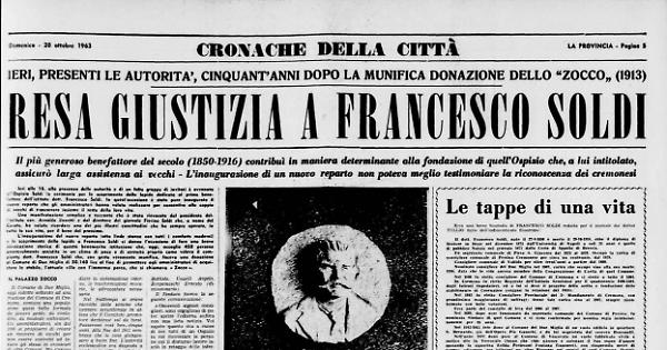 Resa giustizia a francesco soldi, il più generoso benefattore del secolo (1850-1916) contribuì in maniera determinante alla fondazione di quell'Ospizio che, a lui intitolato, assicurò larga assistenza ai vecchi