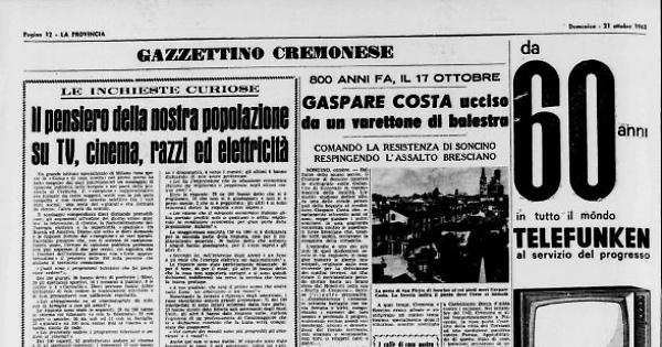 SONCINO, ottobre. – Sul finire dello scorso secolo, il Comune di Soncino incaricò lo storiografo conte Galantino di rinnovare la toponomastica della località. L'emerito studioso dedicò allora una delle strade principali della borgata al condottiero Gaspare Costa che, esattamente ottocento anni or sono, seppe guidare i militi soncinesi in una gagliarda resistenza contro le assedianti forze bresciane che, usando torri mobili, tentavano la conquista della cittadella.
