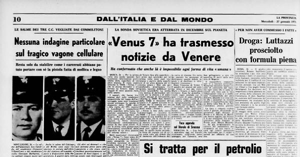 I segnali, che hanno trasmesso dati sulle condizioni atmosferiche del luogo dell'atterraggio, sono stati trasmessi alcune settimane fa, perchè il dispaccio della TASS dice: «Alla vigilia del 1971, mentre il Lunokhod 1 trasmetteva dalla superficie della Luna, la stazione automatica Venus 7 atterrava sulla superficie di Venere. Per la prima volta nella storia delle esplorazioni spaziali, la Terra riceveva informazioni contemporaneamente da due corpi celesti. E per la prima volta giungevano informazioni scientifiche dalla superficie di un altro pianeta del sistema solare».