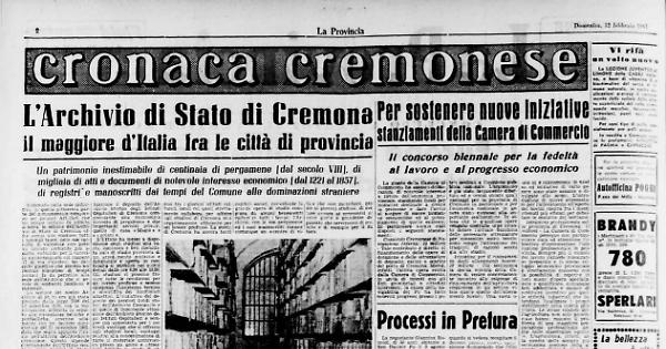 * 6) Archivio della Prefettura di Cremona; a. 1859-1946; registri e mazzi: 322