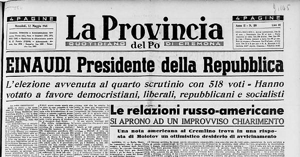 Una settimana di brutta polemica si è conclusa con un atto di resipiscenza e saggezza che fa onore al Parlamento Italiano. Domani Einaudi troverà schierato al suo passaggio l'autentico popolo italiano che lo saluterà e lo consacrerà primo Presidente della Repubblica Italiana.