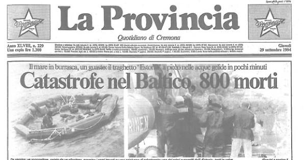 La sciagura è avvenuta a mezzanotte e trenta di due notti fa, quando dopo un inspiegabile black-out e un conseguente arresto dei motori principali il traghetto 'Estonia', 15 mila tonnellate di stazza, è colato a picco. Nel giro di 10-15 minuti si è consumata una tragedia inimmaginabile.