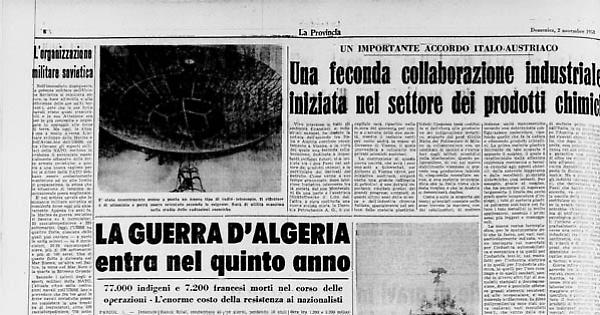 La guerra algerina è entrata oggi nel suo quinto anno. L'avvenimento ha visto ieri l'attentato di Tiaret che ha fatto ben 11 morti e 24 feriti: attentato «simbolico» si fa notare in quanto Tiaret si era guadagnata al referendum costituzionale il nome di «città più gollista dell'Algeria», in quanto la popolazione si era pronunciata in favore delle nuove istituzioni alla maggioranza-primato del 98,6 per cento.