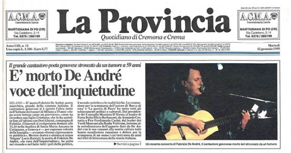 Mentre destra e sinistra si erano 'litigate' Lucio Battisti, la morte di Fabrizio De André, «la voce dell'inquietudine», ha unito nel ricordo e nel lutto tutti i poli della politica, il mondo cattolico e le realtà laiche. La commozione per la scomparsa dell'autore di 'Bocca di rosa' e 'La guerra di Piero' ha unito tutti gli schieramenti politici e culturali. Dal presidente del Consiglio Massimo D'Alema al leader di Forza Italia Silvio Berlusconi, da Armando Cossutta a Pier Ferdinando Casini, dal leader dei Verdi Manconi alla Radio Vaticana, insieme alla sottolineatura dell'apporto dato da De André con le sue canzoni alla nostra cultura tutti hanno manifestato emozione e dolore per la scomparsa di un uomo i cui testi sono da anni nei libri di letteratura della scuola italiana.