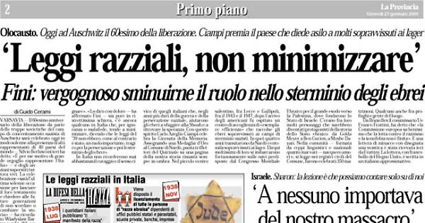 VARSAVIA — Il 60esimo anniversario della liberazione da parte delle truppe sovietiche del campo di concentramento nazista di Auschwitz sarà celebrato oggi in modo solenne alla presenza di alti rappresentanti di 40 paesi del mondo — Silvio Berlusconi ieri ha detto: «È per me motivo di grande orgoglio rappresentare l’Italia» — e degli anziani superstiti tuttora vivi. La celebrazione «sarà l'ultima solenne occasione per lanciare il loro testamento e chiedere alle future generazioni di non scordare o cambiare la storia» — ha ricordato Wladyslaw Bartoszewski (93 anni), ex prigioniero di Auschwitz ed ex ministro degli Esteri polacco — da parte degli ultimi sopravvissuti del più grande campo di sterminio, funzionante fra il 1939 e il 1945 per volontà di Hitler con la collaborazione attiva di Mussolini, come comprovano corrispondenze rivelate proprio nei giorni scorsi.