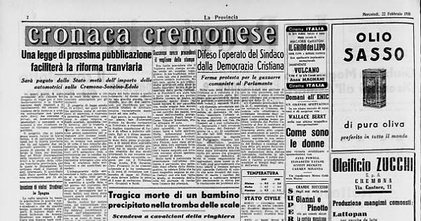 L'Unità è, più del consueto, in vena di inventare avvenimenti. Il momento politico è relativamente tranquillo, a Cremona non si verificano episodii di rilievo? Il mezzo è semplice: si inventano. E l'Unità ha pubblicato ieri due notizie, «fabbricate» di sana pianta. Una l'annuncio che la «Celere» ha partecipato alle feste carnevalesche degli scorsi giorni, fa sorridere; l'altra, invece, par diffusa apposta per creare dei torbidi.