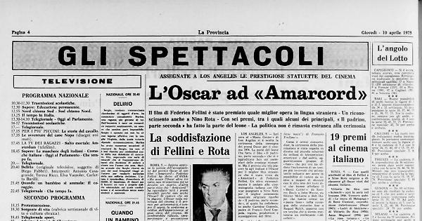 ROMA, 9. — Appena appresa la notizia dell'assegnazione del premio Oscar al suo film «Amarcord» Federico Fellini ha detto all'ANSA: «Ho avuto l'Oscar altre tre volte, non m'aspettavo me ne dessero un quarto, d'altra parte visto che "Amarcord" ha rastrellato tutti i premi possibili perchè non anche l'Oscar? Si capisce che mi fa piacere. L'Oscar nella mitologia del cinema è il premio per antonomasia, è sempre il segno, la conferma araldica dell'appartenenza al gran circo del cinema. Mi sembrerebbe ridicolo, sproporzionato e presuntuoso contestare le motivazioni anche commerciali del premio: tutto quello che può servire alla diffusione di un film non spregevole ritengo che debba essere accettato con gratitudine. Mi dispiace di non essere potuto andare personalmente a ritirarlo: le atmosfere carnevalesche, circensi sapete che mi sono congeniali, le trovo simpatiche, stimolanti, ma sono dovuto restare a Roma perchè ho voluto essere presente alla data del terzo anniversario della preparazione del «Casanova».