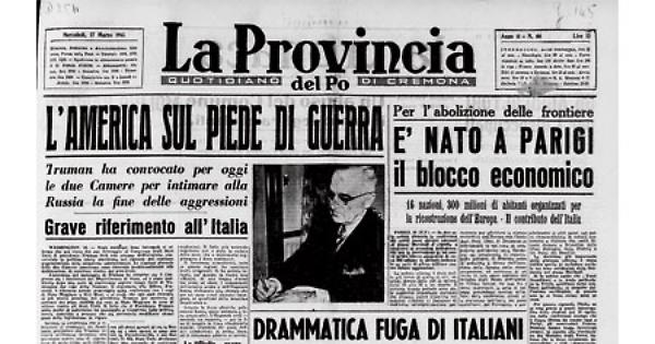 (...) Secondo le congetture che si riferiscono al messaggio del Presidente, prevedono che Truman intimerà all'Unione Sovietica che qualunque nuovo atto di aggressione da parte russa, sarà comtrobilamciarto da misure politiche o militami di carattere energico. Il presidente Truman, inoltre, chiederà dal Congresso i'autoiiiz.razione alile seguenti misur-t: 1) Ripristino delle assegnazioni al servizio miiitaire secondo le capacità professionali, ed attuazione della istruzione militare obbligatoria. 2) Istituzione e schieramenio di una forza aerea mobile capace di fronteggiare una aggressione alla fonte dà provenienza rapidamente ed efficacemente. 3) Autorizzazione di dare appoggio a qualunque alleanza difensiva' militare tra gli Stati" occidentali europei, sulla traccia di quanto stabilito per la Gran Bre- •agna. la Francia ed i paesi del Benelux. 4) Mantenimento di uno stretto controllo statistico sudila capacità industriale e di maino d'opera della nazione, in maniera da indiriz zanle facilmente alla produzione bellica. 5) Proseguiimenito di una politica estera accetta sia al pairtóto repubblicano, sia al partito democratico, in quanto grava sulla nazione americana una minaccia generica. 6) Rapida approvazione del piano Marshall... LE PAGINE