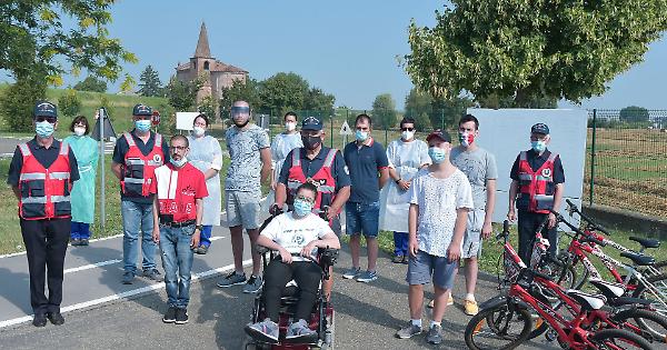 CASALMAGGIORE (17 luglio 2020) - Al campo scuola realizzato nel 2010 dal Rotary Oglio Po in zona Baslenga e intitolato al socio promotore e fondatore del club Antonino Casu, ieri mattina alcuni componenti dell’Associazione Nazionale Carabinieri in congedo di Casalmaggiore hanno svolto una delle loro giornate di educazione stradale a favore di alcuni ragazzi della cooperativa Santa Federici. Accompagnati da alcune educatrici, i giovani protagonisti della mattinata dalle 9.30 circa hanno potuto sperimentare le macchinine elettriche e le biciclette in dotazione alla struttura, prendendo dimestichezza con i segnali stradali collocati lungo il percorso, attrezzato in modo realistico come se si trattasse di una strada vera, anche se le dimensioni sono ovviamente in scala. «È la prima uscita che facciamo quest’anno – commenta il presidente dell’ANC di Casalmaggiore, Antonio Formica -. In genere nel periodo primaverile e a inizio estate effettuiamo queste attività di educazione stradale per le scuole dell’infanzia e le primarie».