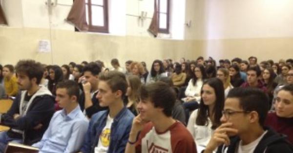 L'aula magna del liceo Manin gremita di studenti per lo scrittore