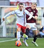 Il tocco di Simeone di mano sul cross di Baschirotto