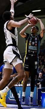 Un successo pazzesco, il terzo ottenuto in trasferta (Forlì, Rimini e ora Torino) in questo mese di gennaio spaziale per la squadra della famiglia Ferraroni, blitz vincente che allunga a cinque la serie positiva della JuVi grazie a prestazioni davvero importanti e convincenti dei propri giocatori. Allen (6 punti, 3 assist e 3 rimbalzi) ha realizzato il canestro decisivo, l’mvp Barbante è stato mostruoso dalla lunga distanza e ad un passo dalla doppia doppia (6 su 7 nelle triple e 9 rimbalzi), Garrett ancora una volta immarcabile e miglior realizzatore (26 punti con 5-9 da due, 4-6 da tre, 4-4 ai liberi), Vecchiola ha gestito la cabina di regia con raziocinio, La Torre ha difeso ancora una volta come un gladiatore, Allinei deve ritrovare la mano dalla lunga distanza ma è un costante pericolo per gli avversari, sotto canestro Bortolin e Del Cadia hanno lottato con efficacia contro Bruttini e Cusin. Il tutto con coach Bechi ancora privo di Bartoli e con lo stoico capitan Panni a mezzo servizio causa guai fisici. Insomma, lo spirito di squadra, la grande unione del gruppo, la capacità di gettare il cuore oltre le difficoltà, sono alla base della sequela di successi centrati dalla Ferraroni JuVi, senza scordare le direttive tecniche che hanno permesso al quintetto juvino di difendere con straordinaria abnegazione ed efficacia e di manovrare in attacco cercando sempre l’uomo giusto al momento giusto.