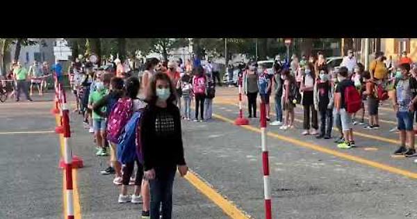 MONTICELLI D’ONGINA (14 settembre 2020) - Alle 8 la prima campanella, nella scuola temporanea allestita in moduli prefabbricati, e i bambini diligentemente schierati nelle corsie disegnate sull’asfalto sono entrati in classe. Tutto è filato liscio, stamattina, nel borgo pallavicino, unico paese in provincia di Piacenza ad organizzare gli ingressi con questi speciali percorsi delimitati e separati per garantire il distanziamento già all’esterno: le strisce e i pallini permettono di incanalare gli alunni, che hanno recepito la novità come un gioco. Stesse regole per la discesa dagli scuolabus e per l’edificio scolastico principale in cui frequenteranno gli allievi delle medie e delle seconde e quarte elementari. Presenti gli assistenti volontari, ma anche il sindaco Gimmi Distante, il vice Giuseppe Papa, gli assessori Cassandra Dagani e Daniele Migliorati. Insieme al preside Alberto Mariani hanno accolto gli studenti e distribuito i libri ai bimbi delle elementari (altra novità di quest’anno).