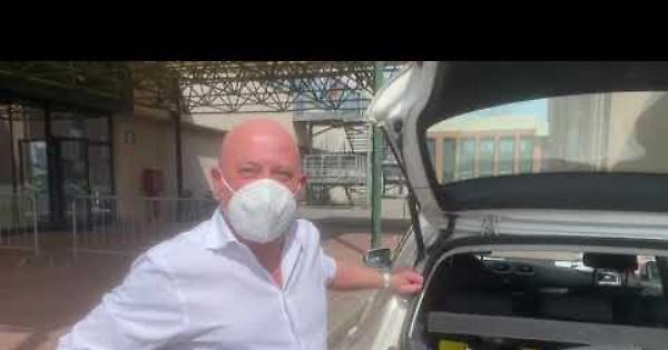 CREMONA (1 aprile 2021) - Un omaggio per i volontari che animano l'Hub vaccinale a CremonaFiere. Un gesto davvero gradito, quello di Beppe e Giada della Corte dei Miracoli, che questa mattina hanno consegnato in Fiera colombe pasquali e vino bianco.