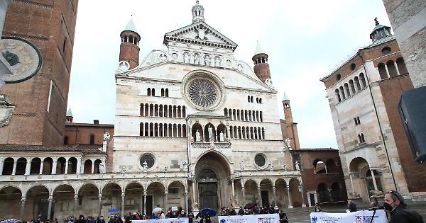 CREMONA (13 aprile 2021) - Oltre cento gli esercenti che oggi pomeriggio, in piazza del Comune, hanno chiesto di potere tornare a lavorare: #vogliamofuturo e #ilfuturononsichiude, sono alcuni degli hashtag stampati sui cartelli esposti all’ombra del Torrazzo. Da Nord a Sud la protesta ha coinvolto migliaia e migliaia di ristoratori, baristi, albergatori, titolari di locali notturni: in varie città italiane, su iniziativa di Fipe-Confcommercio, hanno alzato la voce e chiesto rispetto. Mentre il presidente cremonese dell’associazione di categoria Alessandro Lupi si trovava a Roma per incontrare il ministro dello Sviluppo economico Giancarlo Giorgetti, anche sui sampietrini davanti al Duomo è andato in scena un sit-in pacato ma deciso.