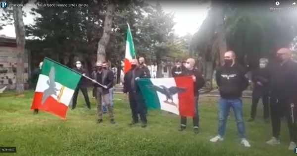 Quindi, ha parlato Claudio Fedeli, 97 anni, tenente della guardia repubblicana della Rsi, consigliere comunale del Movimento sociale per tre mandati, "con i sindaci Zaffanella, Garini e Bodini". Fedeli ha invitato i giovani "a studiare, studiare, studiare. E a leggere, leggere, leggere i nostri libri per cercare la verità e tentare di riabilitarci". Alle 11 , il corteo si è mosso lungo il viale del cimitero blindato da polizia, carabinieri e vigili. Prima tappa, la tomba di Farinacci, dove è stata deposta una corona d'alloro con la scritta 'I tuoi camerati'. Si è recitato il Padre nostro, poi saluti romani e l'intonazione di 'Giovinezza Giovinezza'. Seconda tappa, davanti al cippo dove sono raccolti i resti di alcuni degli oltre cento morti della Rsi insieme a quelli di tre militari tedeschi rimasti senza nome. Qui è stata deposita la corona d'alloro. Al grido di 'presente' e con il saluto romano sono stati salutati Mussolini, Priebke, il maresciallo Petain. La commemorazione si è svolta regolarmente ed è stata filmata dalla Digos.