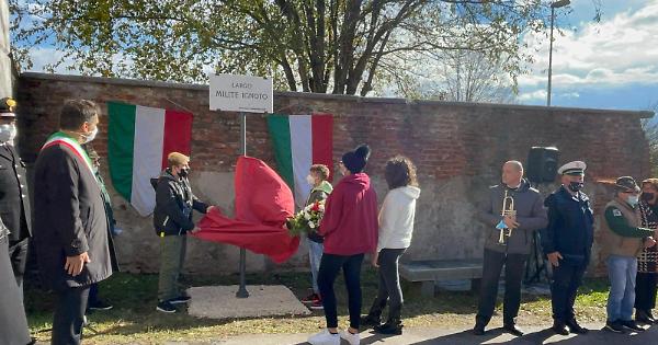 SONCINO - Questa mattina alle 10.30, a Soncino, l’amministrazione comunale ha inaugurato il Largo Milite Ignoto. La cerimonia ha fatto seguito alla richiesta avanzata nelle scorse settimane dalle associazioni locali di Alpini e Reduci. Oltre al valore simbolico del gesto, non a caso compiuto proprio in occasione del 4 Novembre, la targa apposta dai ragazzi delle scuole medie insieme al sindaco Gabriele Gallina permette finalmente di dare un nome allo slargo nel cuore del centro storico, collegamento cruciale fra il castrum e il Borgo Sotto, rimasto sinora nell’anonimato nonostante la sua importanza storica e urbanistica. Il primo cittadino e il capo alpino Teresio Defendenti hanno spronato i giovani a difendere la pace e la memoria. In chiusura il Silenzio e la benedizione del parroco don Giuseppe Nevi.