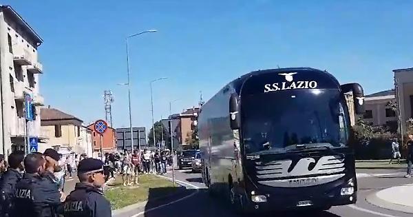 CREMONA - Presidiato l'arrivo a Cremona dei 3600 circa tifosi laziali per la partita allo Zini contro la Cremonese: 2500 nella curva ospiti e 1100 nei distinti. Polizia e vigili urbani hanno atteso l'arrivo dei pullman biancocelesti.