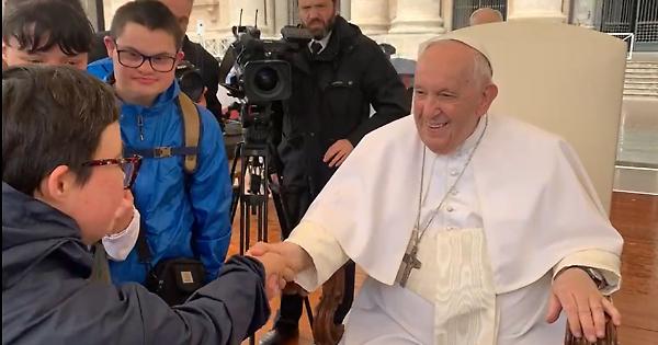 CITTÀ DEL VATICANO - I ragazzi di Thisability, guidati da Alessandro Corbari, hanno incontrato il papa in Piazza San Pietro. Al pontefice sono stati donati alcuni regali e gli son state recapitate personalmente le lettere a lui destinate che i ragazzi hanno scritto. Una grande emozione, «da far tremare le gambe» come sottolineano i portavoce del gruppo, anche perché il pontefice ha ricevuto poche altre associazioni, e lo ha fatto all'ombra della cattedrale di San Pietro.